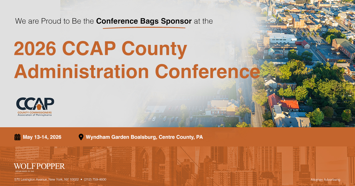 Wolf Popper is Proud to be the Conference Bags Sponsor at the 2026 County Commissioners Association of Pennsylvania (CCAP) County Administration Conference May 13-14, 2026 at the Wyndham Garden Boalsburg in Centre County, PA.