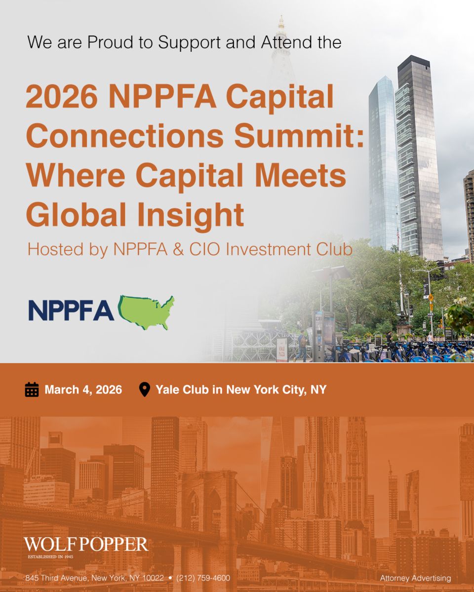 Wolf Popper Proudly Supports and Attends the 2026 National Public Pension Fund Association (NPPFA) Capital Connections Summit: Where Capital Meets Global Insight taking place March 4, 2026 at the Yale Club in New York City, NY.